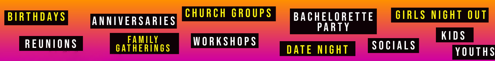 - Party of 10 or less must be paid in full to book.